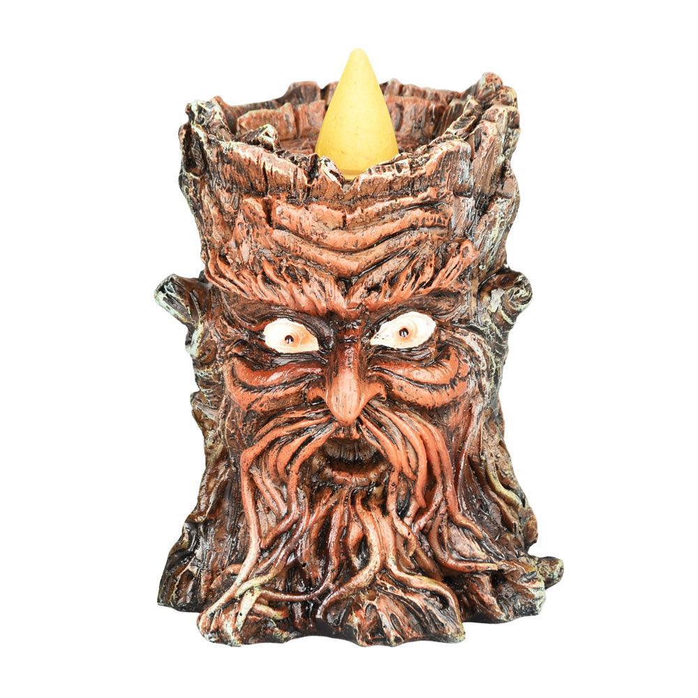 Introducing the Wise Tree Man Incense Burner, standing at a captivating 3.25 inches tall. This unique polyresin incense burner is designed to work perfectly with backflow incense cones, creating a mesmerizing display of aromatic smoke.